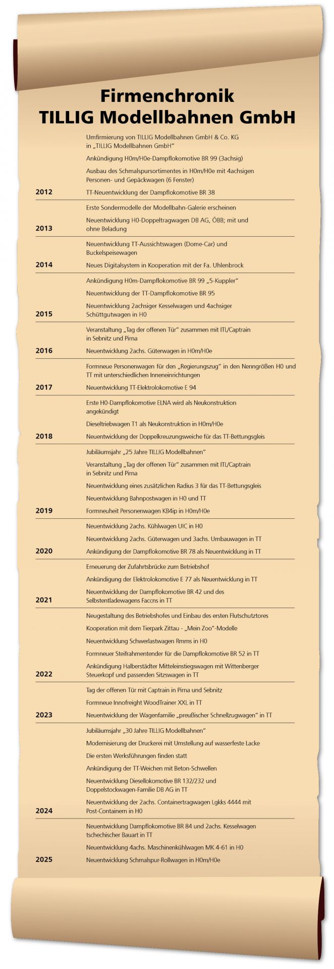 | Chronik Fa. Zeuke | Chronik Zeuke/BTTB | Chronik TILLIG bis 2011 | Chronik TILLIG ab 2012 | |||