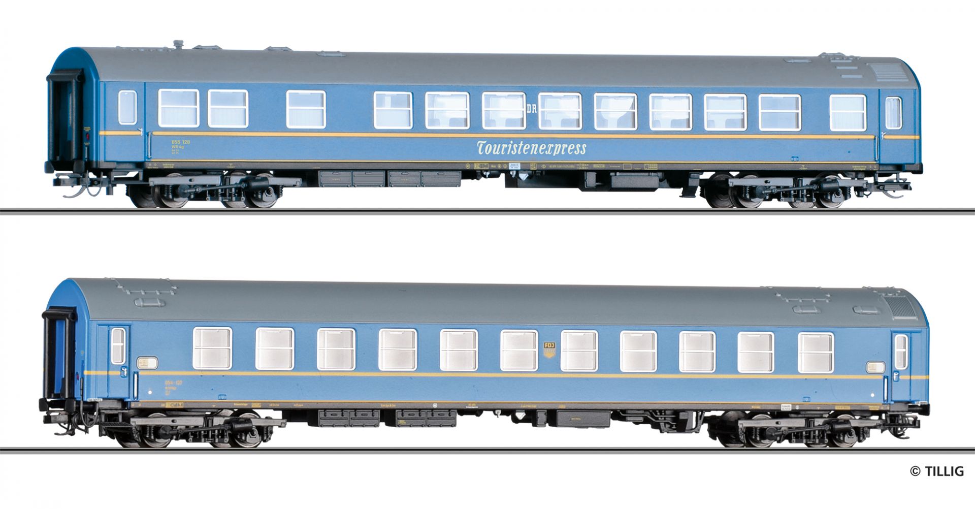 | 502414 | Reisezugwagenset "Tourex", Teil 2, der DR, bestehend aus 1 Schlafwagen und 1 Kultur-/Aufenthaltswagen, Ep. III | ![]() | |