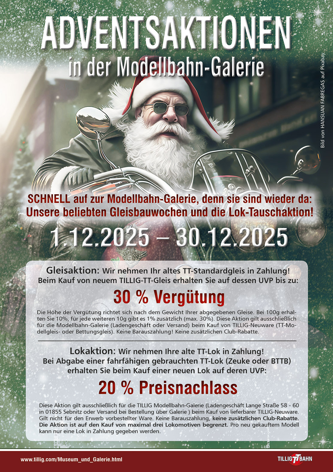 Wichtige Hinweise zur Bestellung über den Versandweg: In diesem Fall senden Sie bitte Ihre Bestellung NUR gemeinsam mit Ihren ,,Altmodellen" an die TILLIG Modellbahn-Galerie, Lange Str. 58-60, 01855 Sebnitz.