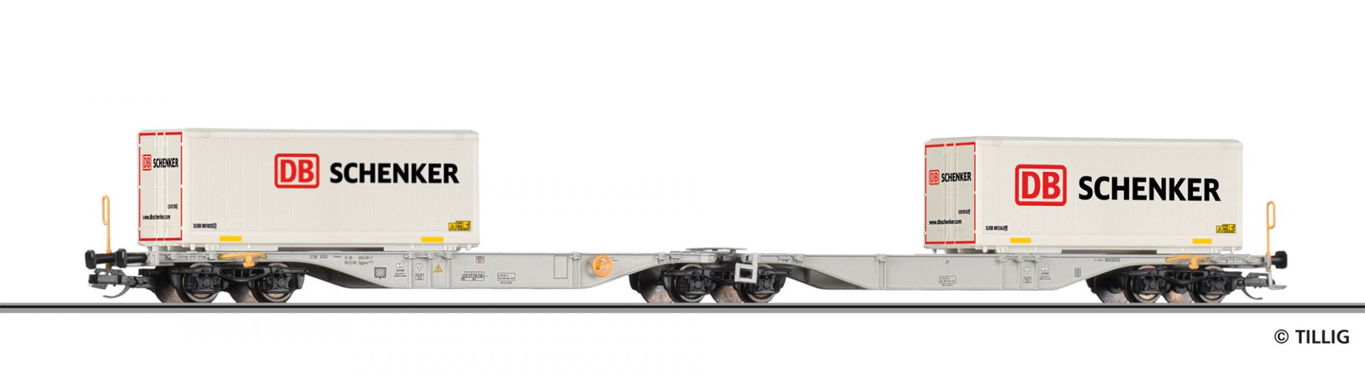 18076 Containertragwagen Sggmrs 747 der DB AG, beladen mit zwei Wechselbehältern DB Schenker, Ep.VI