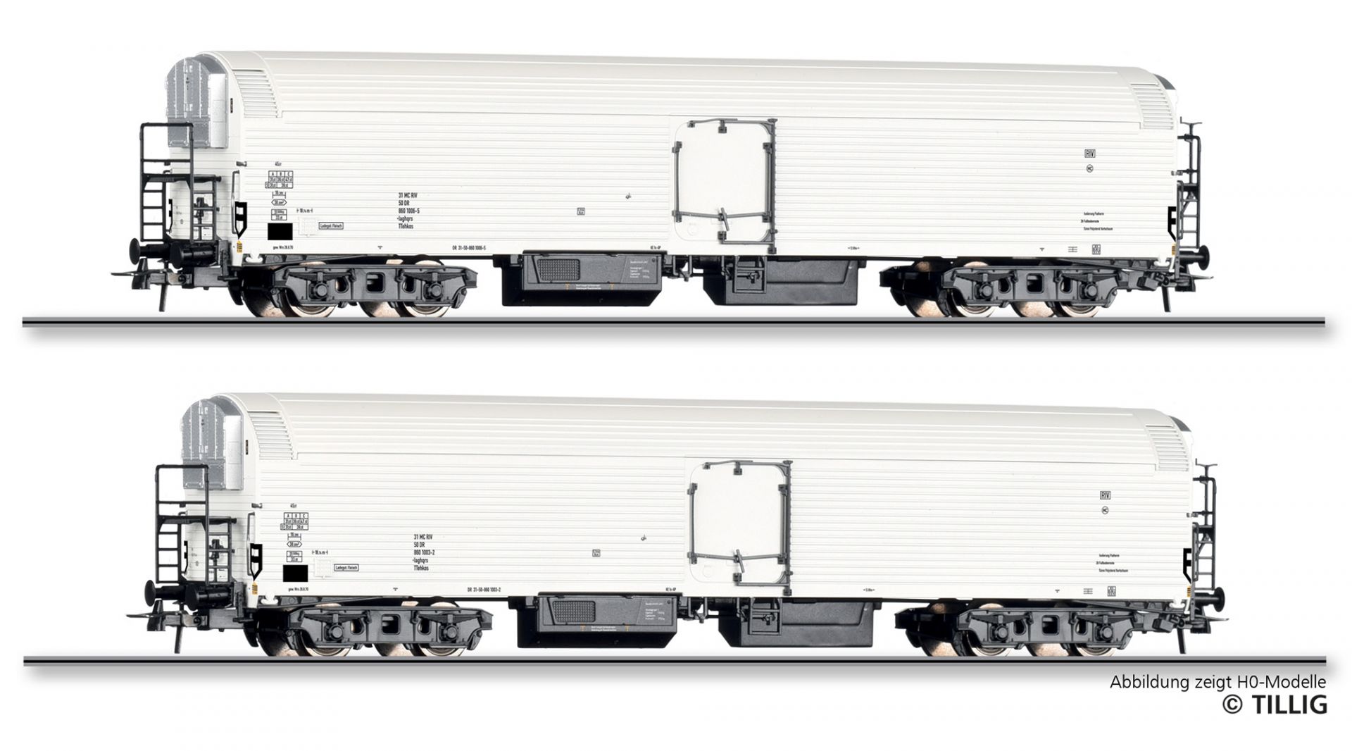 Güterwagenset der DR, bestehend aus zwei Maschinenkühlwagen Iaghqrs