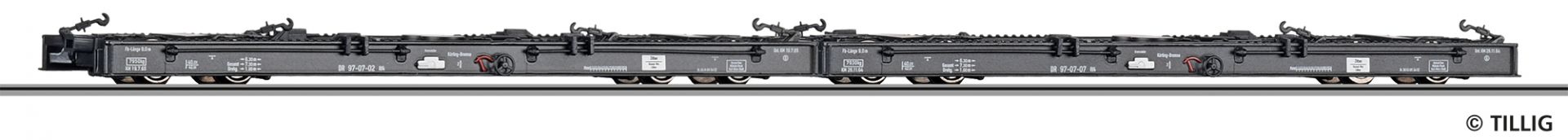 Güterwagenset der DR, bestehend aus zwei Schmalspur- Rollwagen Rf4