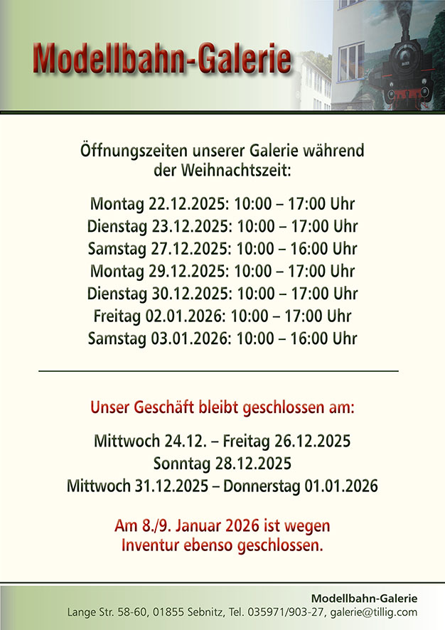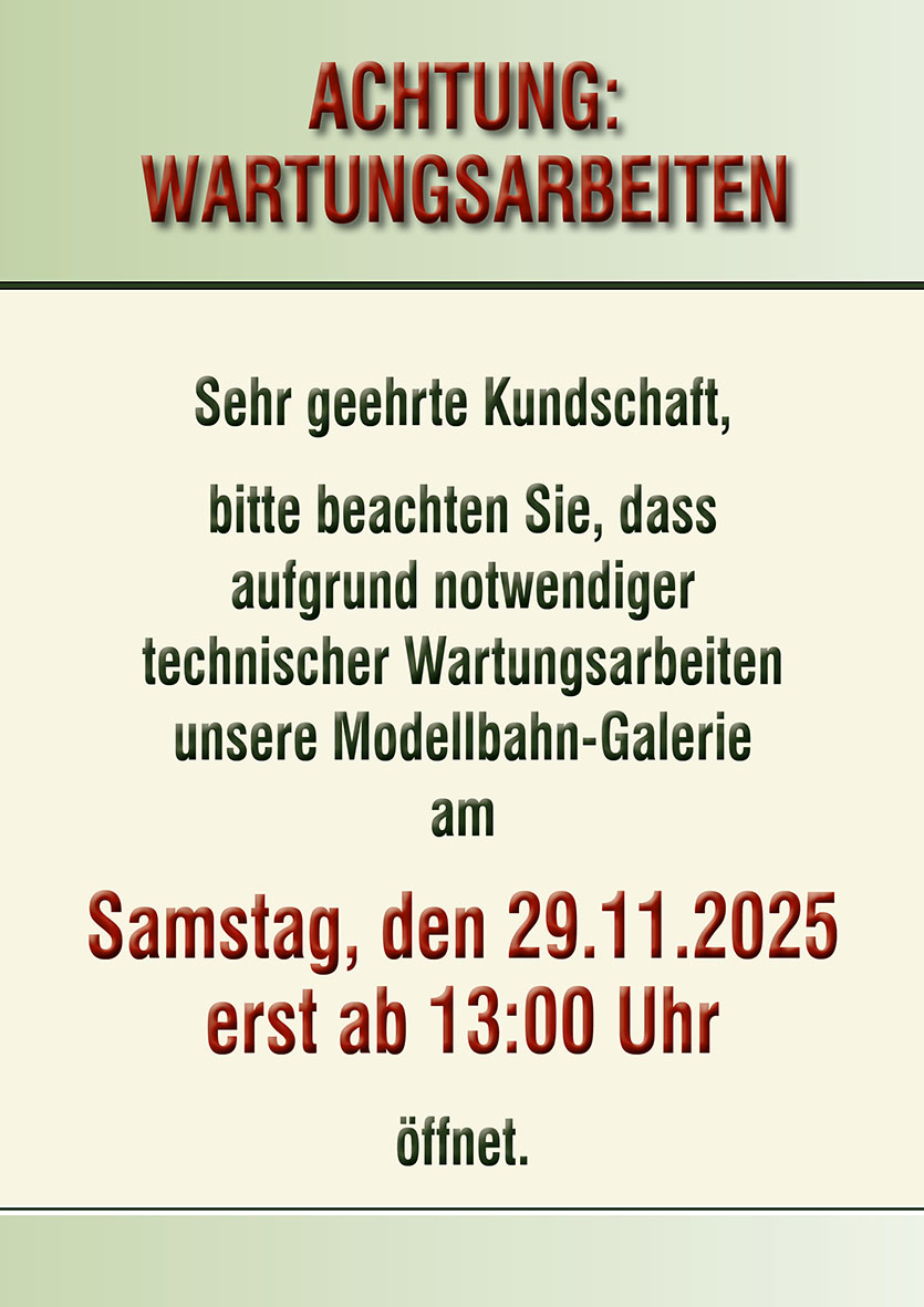 We look forward to your visit and wish you a pleasant stay in our Modellbahn-Galerie!