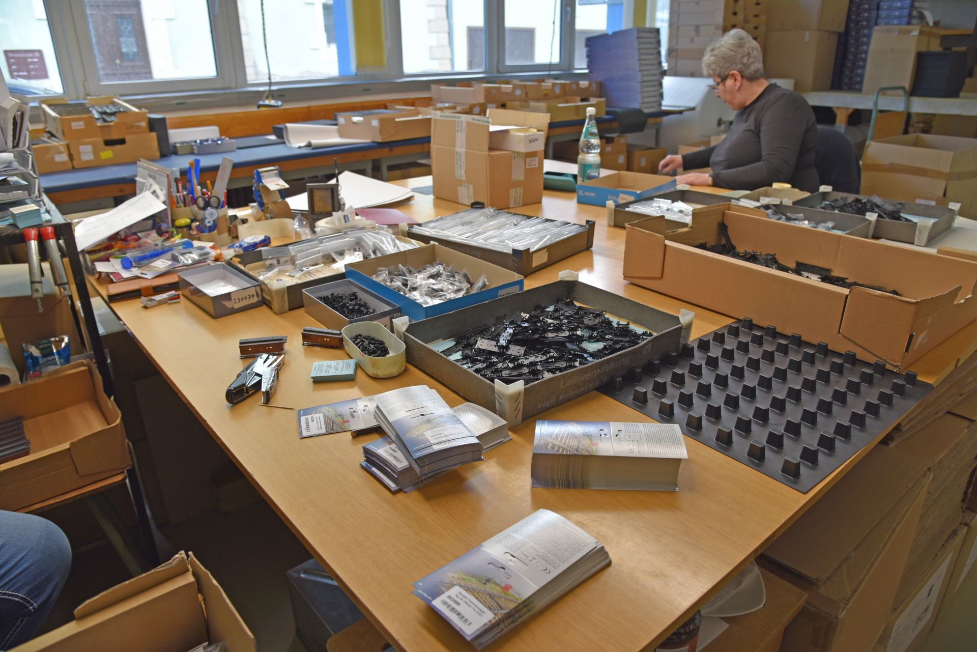 Packaging:In the set-packing department, items consisting of several individual models and components, such as tracks, are packaged into complete sets. A starter set includes not only models such as locomotives and individual carriages, but also additional accessories such as speed controllers, tracks, etc. Information leaflets and instruction manuals are also included. | | |